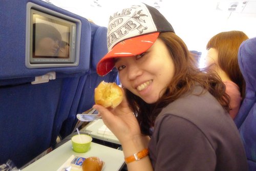 匆匆趕上飛機的楊副總肚子餓的連吃了飛機餐的3個麵包