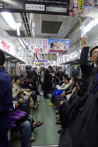 夜晚九點多的地鐵車廂內滿滿的都是西裝筆挺的上班族