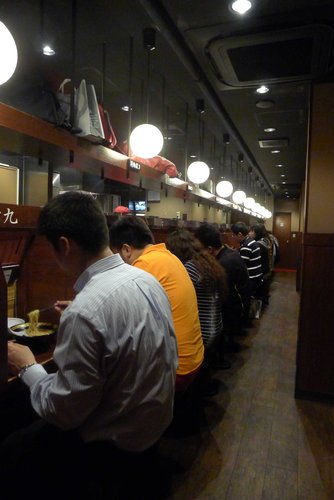 而一蘭拉麵特別的地方就是他把座位隔成一格一格的單人座位