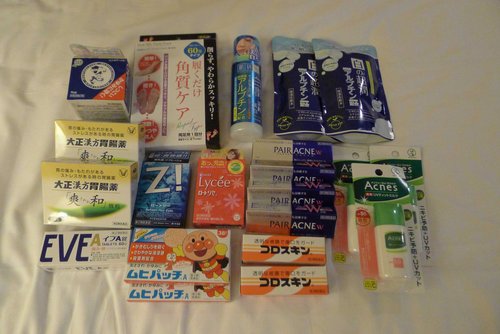 只買了肌研白潤、小護士AD軟膏、小花眼藥水、人家說好用的痘痘藥